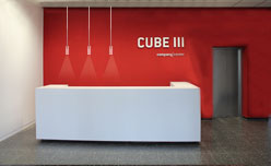 Der CUBE III Tower verfügt über Natursteinböden im Eingangsvoyer und den Treppenhäusern.